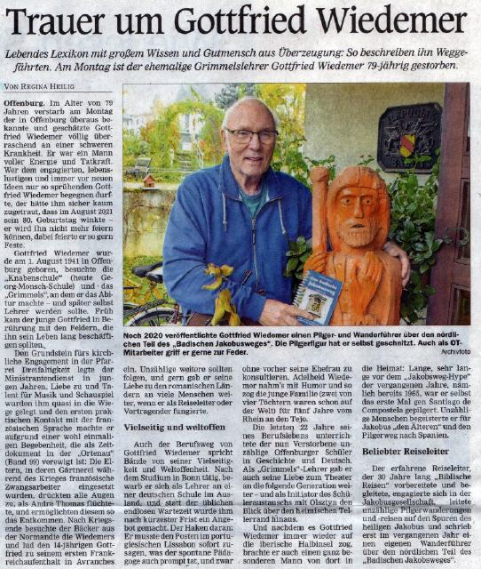 Die „Badische St.Jakobusgesellschaft e.V.“ und viele Freunde bundes- und europaweit sind voller Trauer.