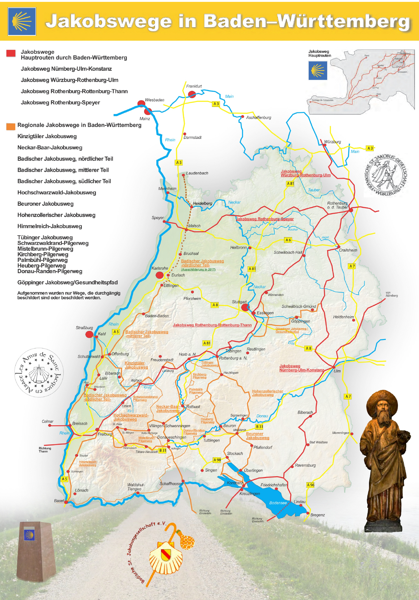 Die Arbeitsgemeinschaft der Jakobusgesellschaften und -initiativen in Baden-Württemberg hat einen gemeinsamen Flyer herausgegeben.