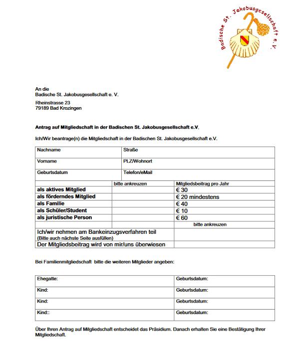 Hier können Sie die Mitgliedschaft in der Badischen St. Jakobusgesellschaft e.V. beantragen.